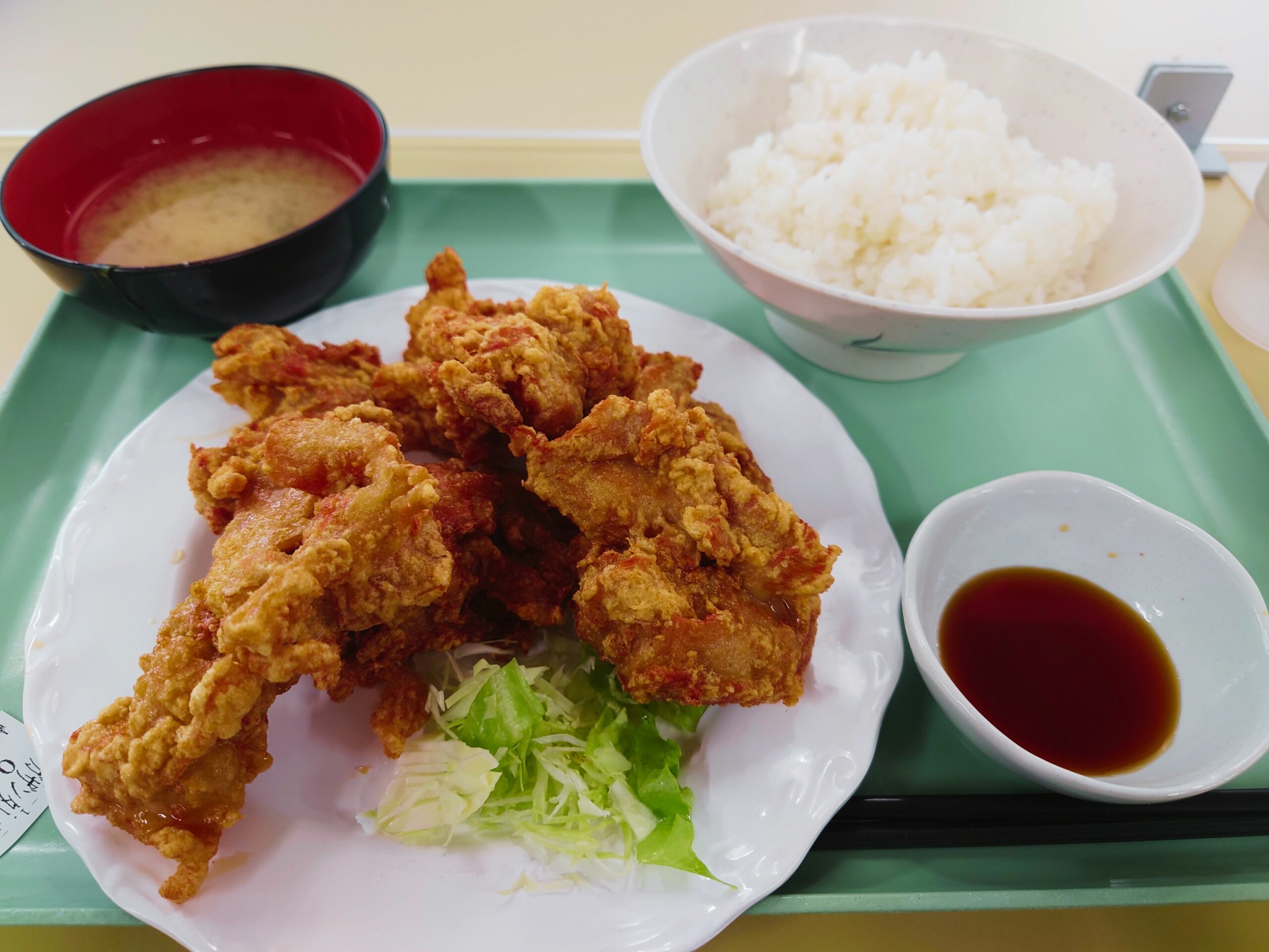 定食・カレー・ラーメン・そば・うどんなど、一般的な食堂メニューを提供しています。中でも人気メニューがタレザンギを使用した「ザンタレ定食」です。
