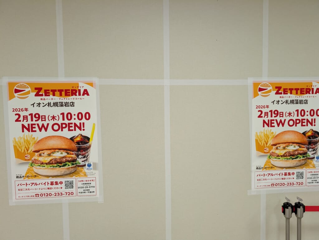 今回、ロッテリアをリブランドし、2026年3月末までに国内全店を「ゼッテリア」へ順次転換することが発表されました。南区の「イオン札幌藻岩店」ももちろんその対象となり、今回リニューアルが行われます。
